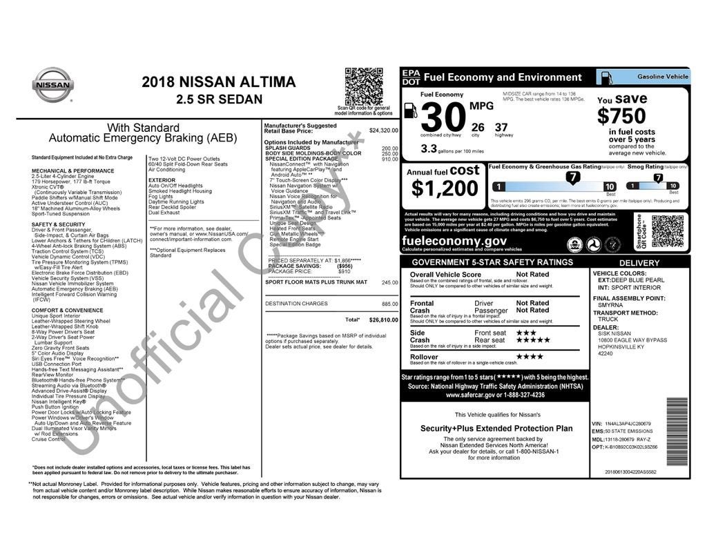 The Altima 2.5 SR Special Edition package elevates this sedan to new heights, offering a range of advanced features that cater to your every need. Enjoy the convenience of the Nissan navigation system with voice recognition, SiriusXM Traffic and Travel Link, and the seamless integration of Apple CarPlay and Android Auto. The heated front seats will keep you cozy, while the power driver's seat ensures a personalized and comfortable driving position.