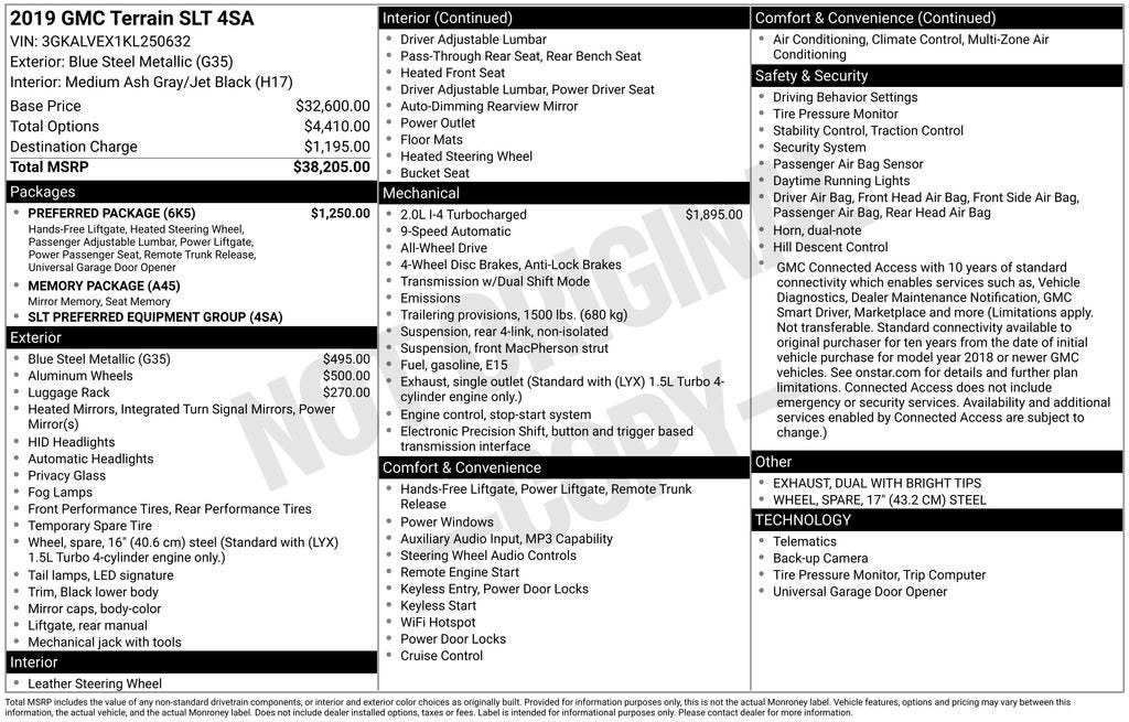 Designed to handle your everyday adventures with ease, the 2019 GMC Terrain SLT is the perfect blend of style, capability, and technology. Experience the difference for yourself – schedule a test drive today and discover why this SUV is the perfect fit for your lifestyle.