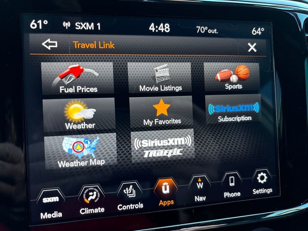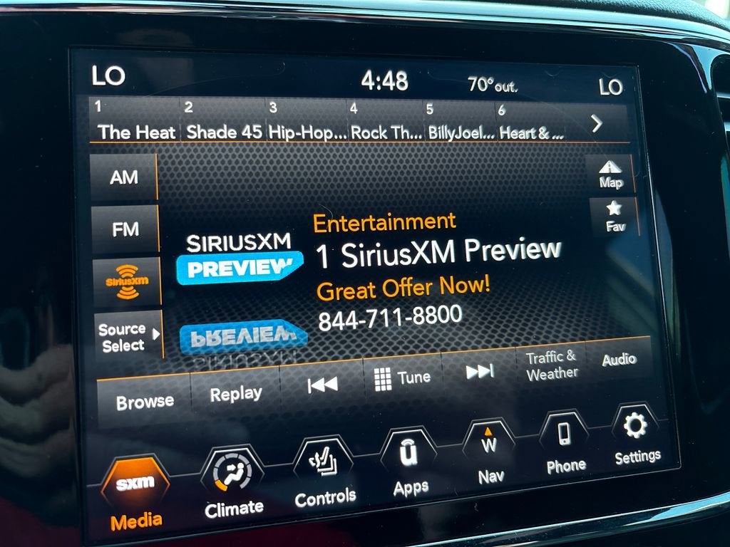 Stepping inside, you'll be greeted by a luxurious cabin that combines premium materials and advanced technology. The Uconnect 4C Nav system with an 8.4-inch touchscreen display provides seamless integration of your smartphone, while the SiriusXM Satellite Radio and HD Radio keep you entertained on every journey.