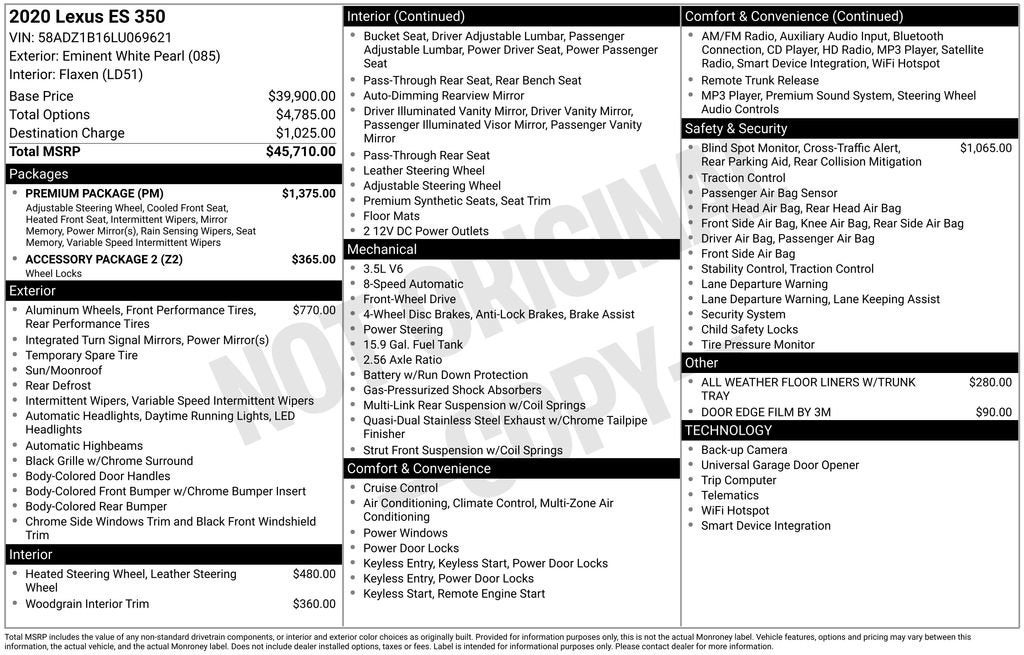 Elevate your driving experience with this exceptional 2020 Lexus ES 350. This luxury sedan boasts a remarkable combination of style, performance, and cutting-edge technology, making it the perfect choice for the discerning driver.- Local Trade- Clean Accident History- Premium Package with Heated and Ventilated Front Seats, Driver Memory, Power Tilt and Telescoping Steering Column- Blind Spot Monitor with Park Assist- 18 Alloy Wheels- Heated Leather and Wood Steering Wheel- Power Moonroof- Exterior Parking Camera Rear- Fully Automatic Headlights- Security System- Auto Retractable Outside Rear View Mirror- Garage Door Transmitter: HomeLink- Intelligence Clearance Sonar- Lane Change Assist- 10-Way Power Adjustable Front Seats- NuLuxe Seat Trim- Windshield De-IcerPowered by a robust 3.5L V6 engine and mated to an 8-speed automatic transmission, this Lexus ES 350 delivers an exceptional driving experience with an EPA-estimated 22 MPG in the city and 32 MPG on the highway. The premium interior features luxurious NuLuxe seating, a heated leather-wrapped steering wheel, and a premium sound system, ensuring your every journey is a pleasure.Safety is paramount, and this Lexus ES 350 is equipped with a suite of advanced safety features, including a Blind Spot Monitor with Park Assist, Rear Cross-Traffic Alert, and a Backup Camera, giving you the confidence to navigate the road with ease.Whether you're commuting or embarking on a road trip, this 2020 Lexus ES 350 is the perfect companion. With its exceptional performance, refined interior, and cutting-edge technology, it offers an unparalleled driving experience that will exceed your expectations.We are the #1 VOLUME GMC DEALER IN KENTUCKY! Every effort is made to ensure the accuracy of the information contained in this classified listing. Dealer is not responsible for errors or omissions as much of the information is compiled from 3rd party data source feeds. PRINT & BRING US THIS PAGE to the dealership for a 100% accurate equipment list of accessories, equipment & vehicle history. Late evening and Sunday appointments are available. Proudly serving: Bowling Green, Nashville, Hopkinsville, Clarksville, Campbellsville, Elizabethtown, Lebanon, Louisville, Russell Springs, Owensboro, Horse Cave, and greater Kentucky and middle Tennessee.