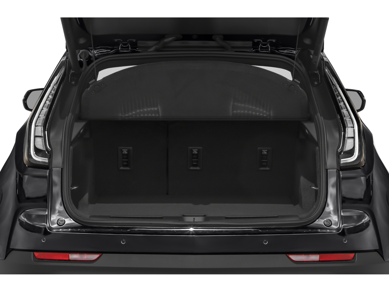 - Opens or closes when the system senses the key fob and the driver extends their foot under the left-hand side of the rear bumper over an image of the Cadillac Crest projected under the vehicle