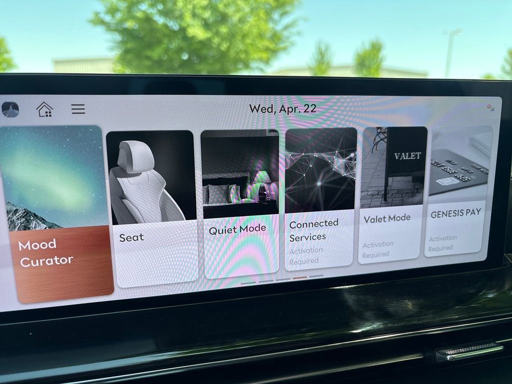 Elevate your driving experience with the premium amenities of this GV80, including the 12-speaker audio system, dual-zone climate control, and power-adjustable front seats with memory settings. The Blue leather seating surfaces and interior accents add a touch of elegance to every journey.